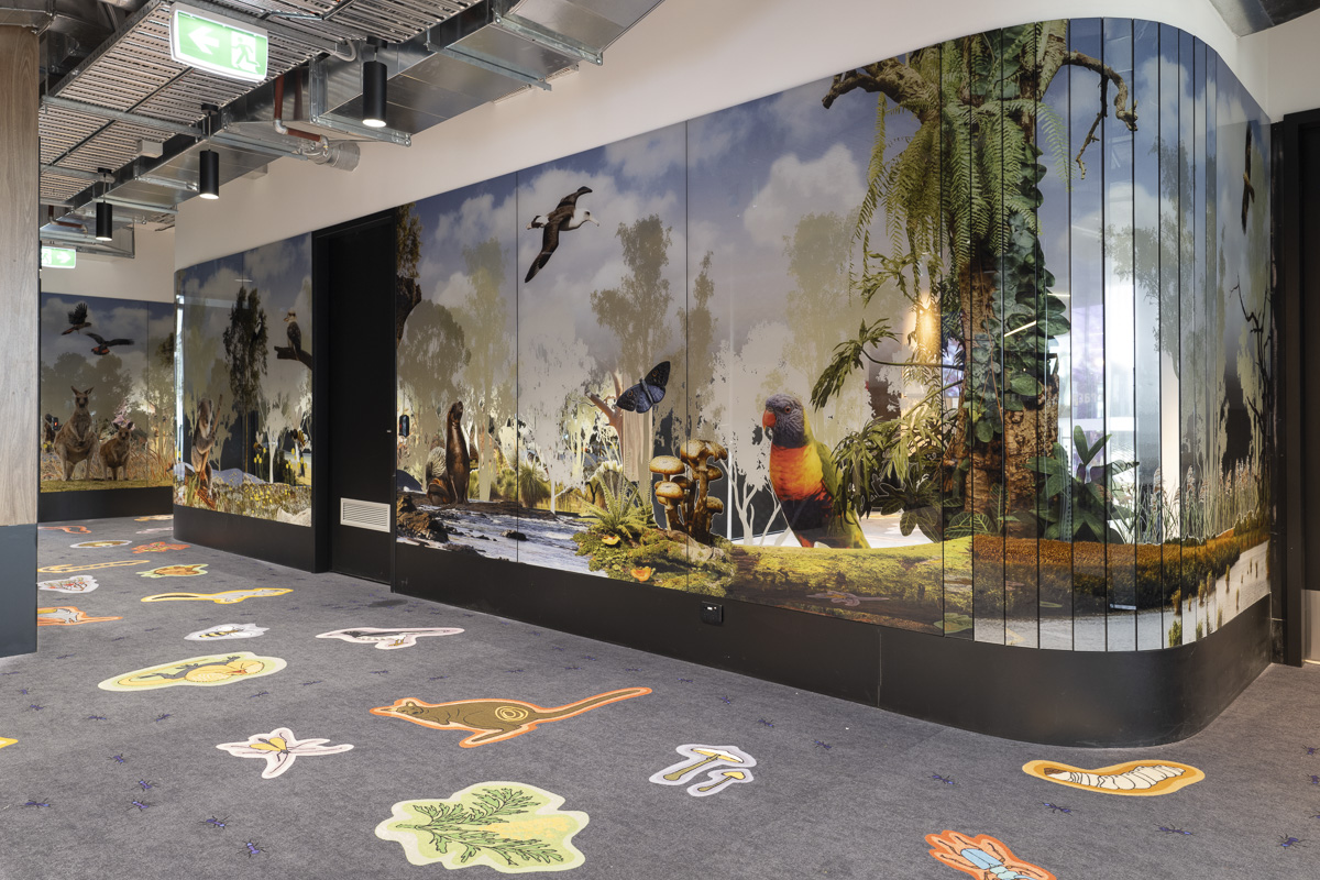 Viridian collaborated closely with Buildcorp Interiors and the commissioned artists from the conceptual phase through to completion. This partnership ensured that the artists’ visions were translated seamlessly into tangible, vibrant works of art. By utilising PixaGraphic™, Viridian transformed the intricate designs into a permanent feature of the library’s architecture.